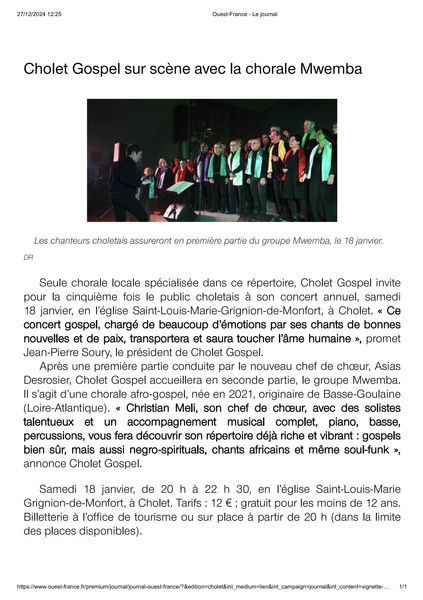 Frédéric Lamy reçoit Maud Cherel, cheffe de cœur de Cholet Gospel